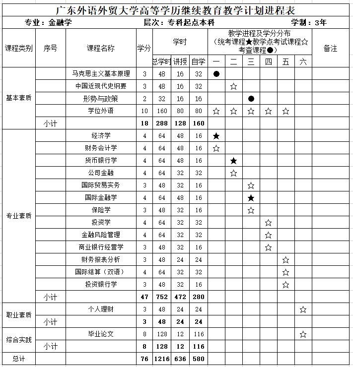 总学分76,其中基本素质课程18学分;专业素质课程47学分;职业素质课程3学分;综合实践课程8学分。