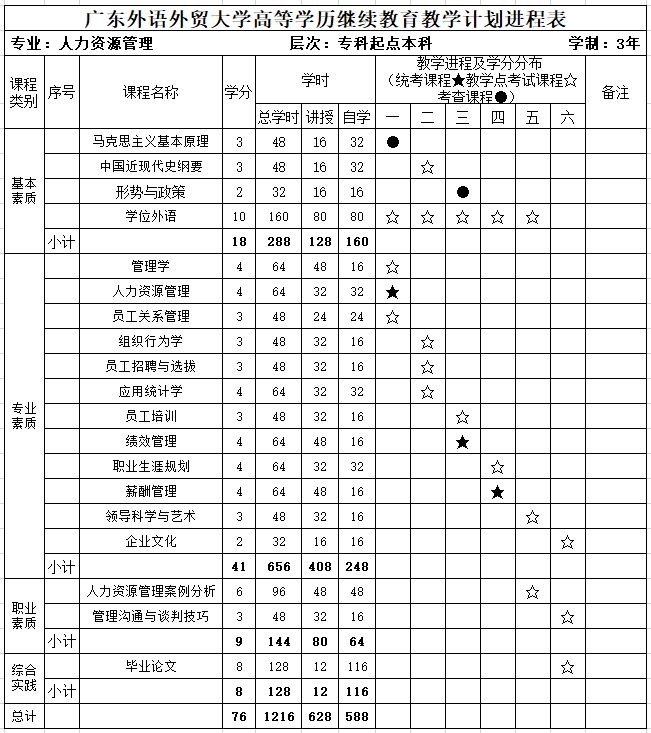 总学分76,其中基本素质课程18学分;专业素质课程41学分;职业素质课程9学分;综合实践课程8学分。