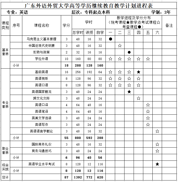 基本学制:3年; 学习形式:业余